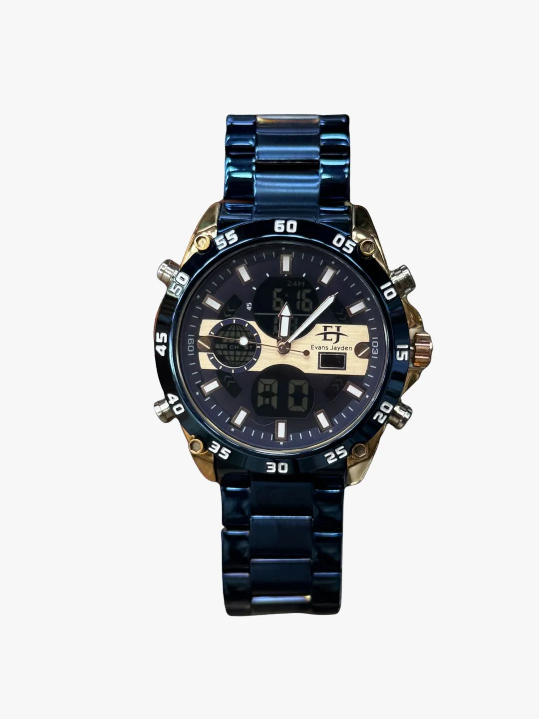 The BELLEDA EVANS JAYDEN Original Watch is a versatile timepiece designed for men who value both style and functionality. Featuring analog and digital time display, it combines modern technology with a classic look. Powered by a precise quartz machine, it ensures accurate performance and long-lasting reliability. The durable stainless steel chain adds strength and sophistication, making it perfect for daily wear or formal occasions.